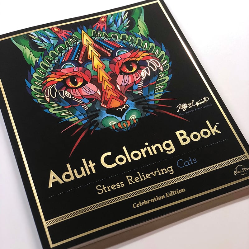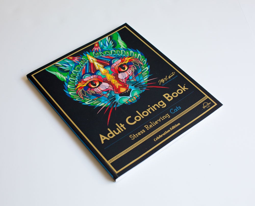 Get your signed copy of "Stress Relieving Cats: Celebration Edition", my feline-inspired adult coloring book, today!