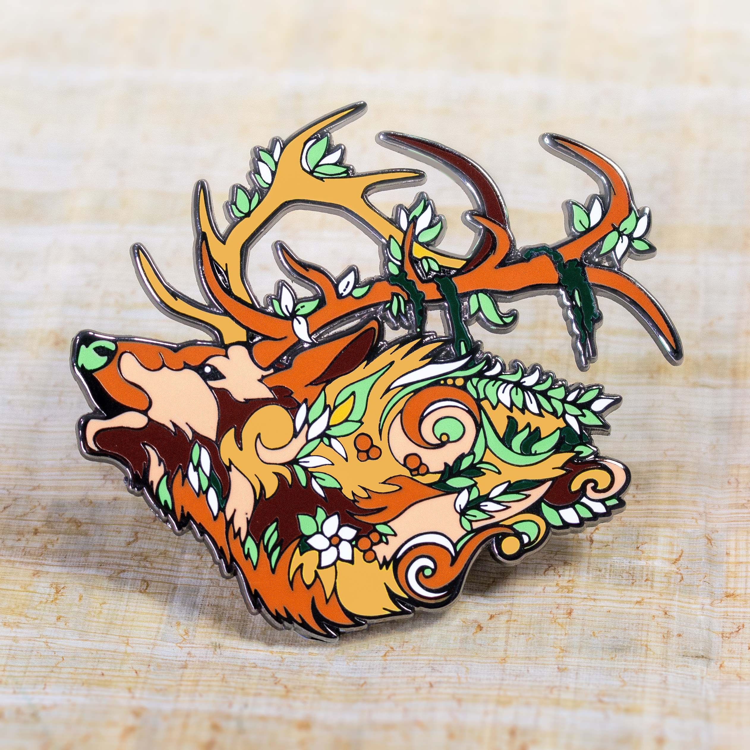 Made for our Patreon Pin-of-the-Month Club, this enamel pin from July 2020 features an Elk dissolving into flora. With eight different bold colors and rich details, this pin is a true showstopper! Pin this to a jacket, backpack, or pin board and show off your favorite furry creatures!