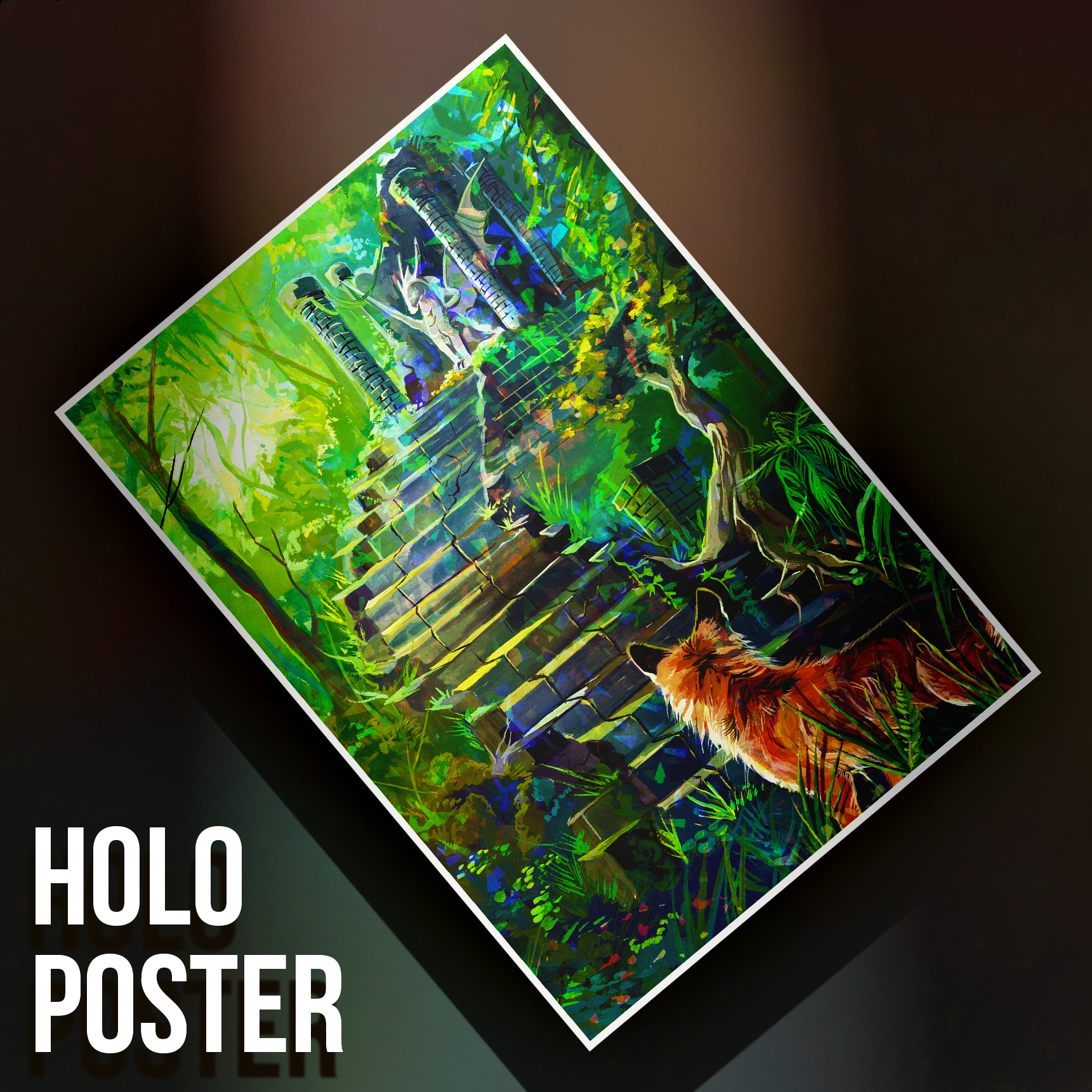 Each poster is printed on extra heavy-duty acid-free cardstock, coated with a holographic layer that selectively enhances darker areas of the artwork while leaving lighter portions untouched. This design amplifies contrast and ensures the artwork truly pops.