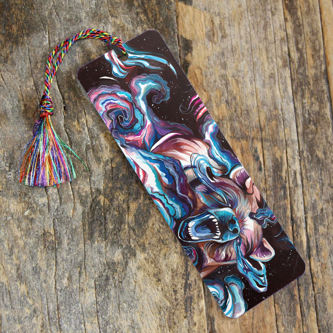Each bookmark features a durable, high-resolution lamination print with quarter-rounded edges. A unique rainbow tassel finishes off the striking single-sided image, making it the perfect way to keep your place in your favorite book. Each bookmark measures roughly 2.25x6.25" and has a full-color print on one side.