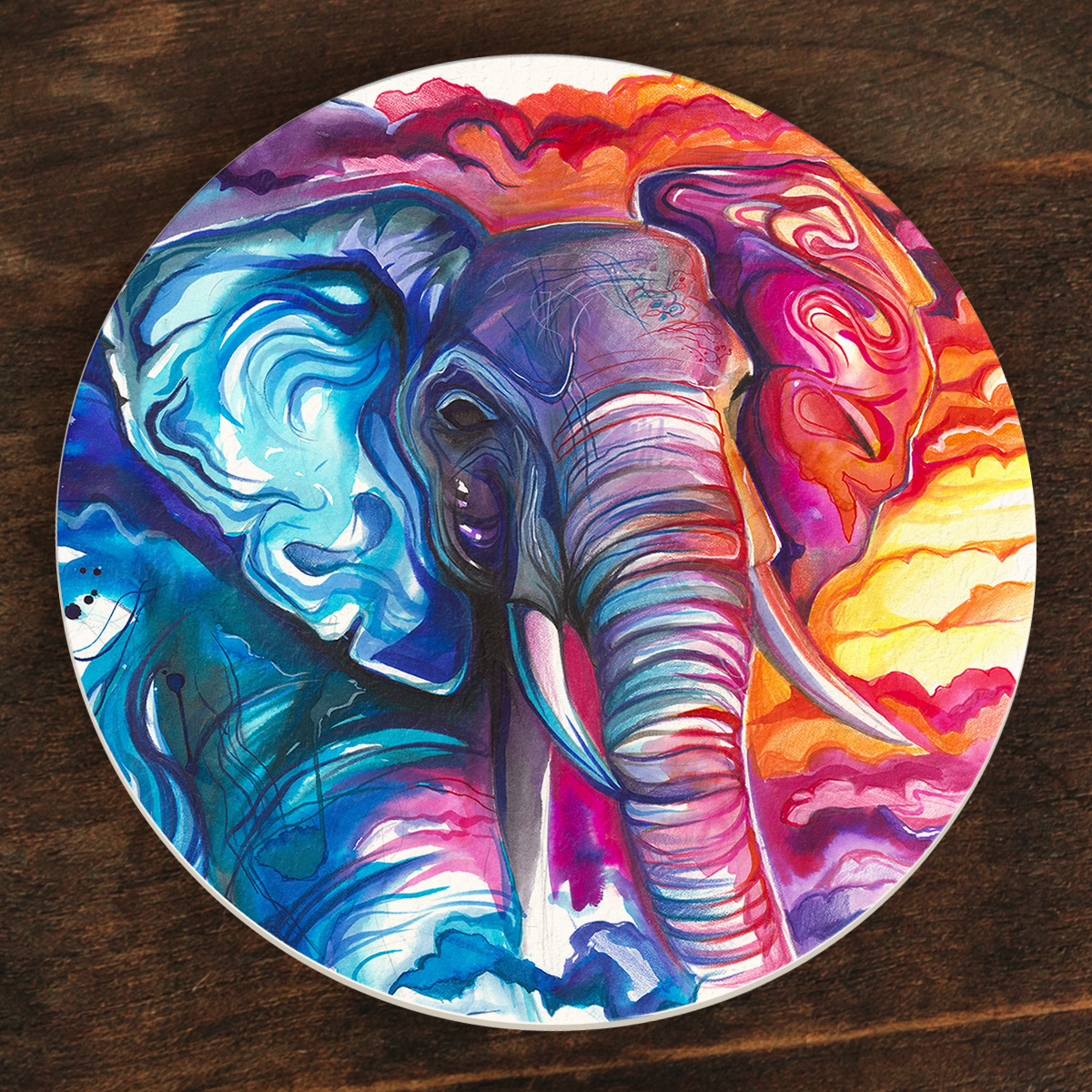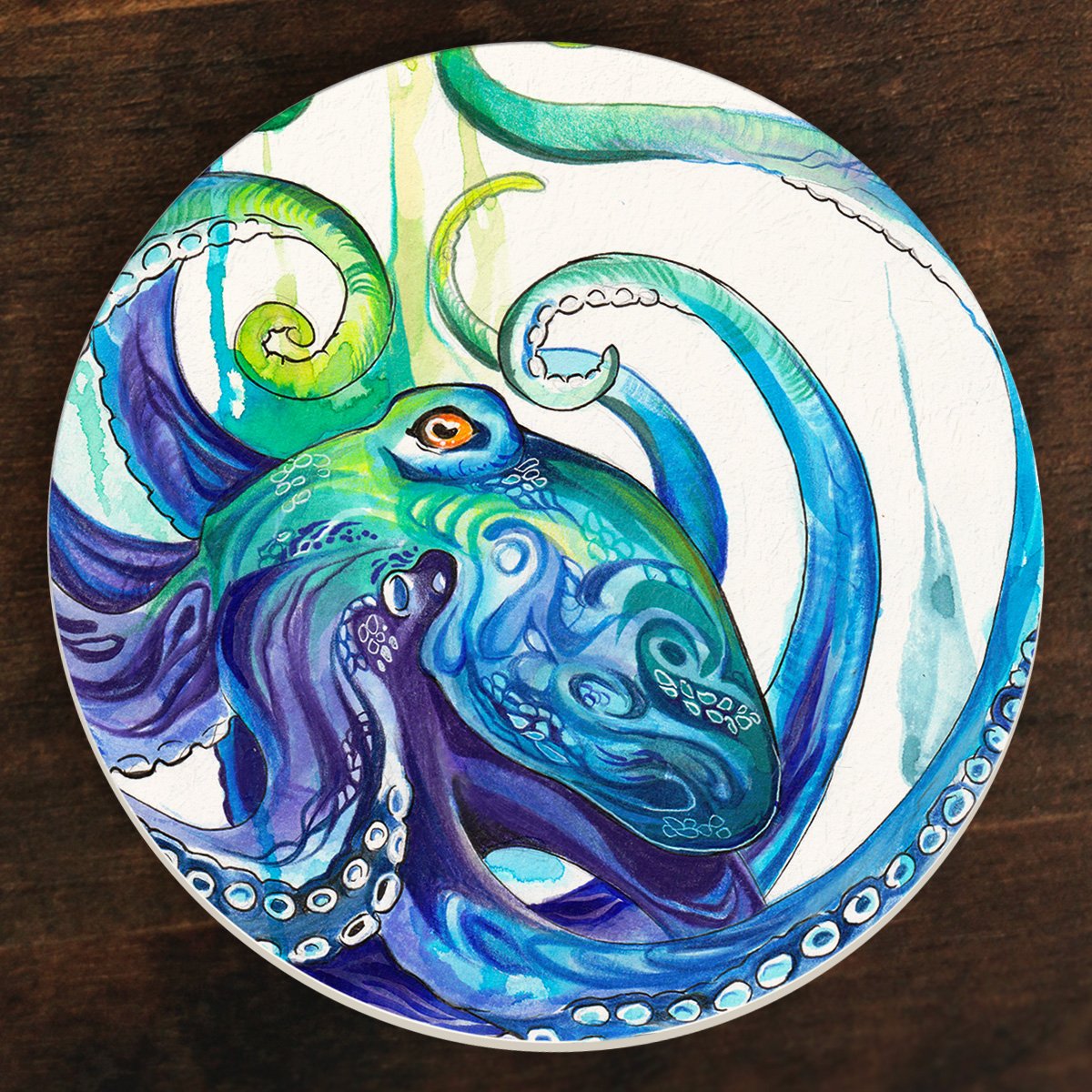 Add some flair to your desk, bar, or coffee table with vibrant coasters! This set of curated rainbow designs included four of our most popular designs: Octopus, Lion Splash, Elk, and Cloudwalker. Printed in full color on 60 pt. coaster board, our coasters will soak up condensation, keeping your table dry for the next round. Just let the any residual water dry and these can be reused a surprising number of times! Only a limited number of these designs are being produced so grab a pack (or two) while you can!