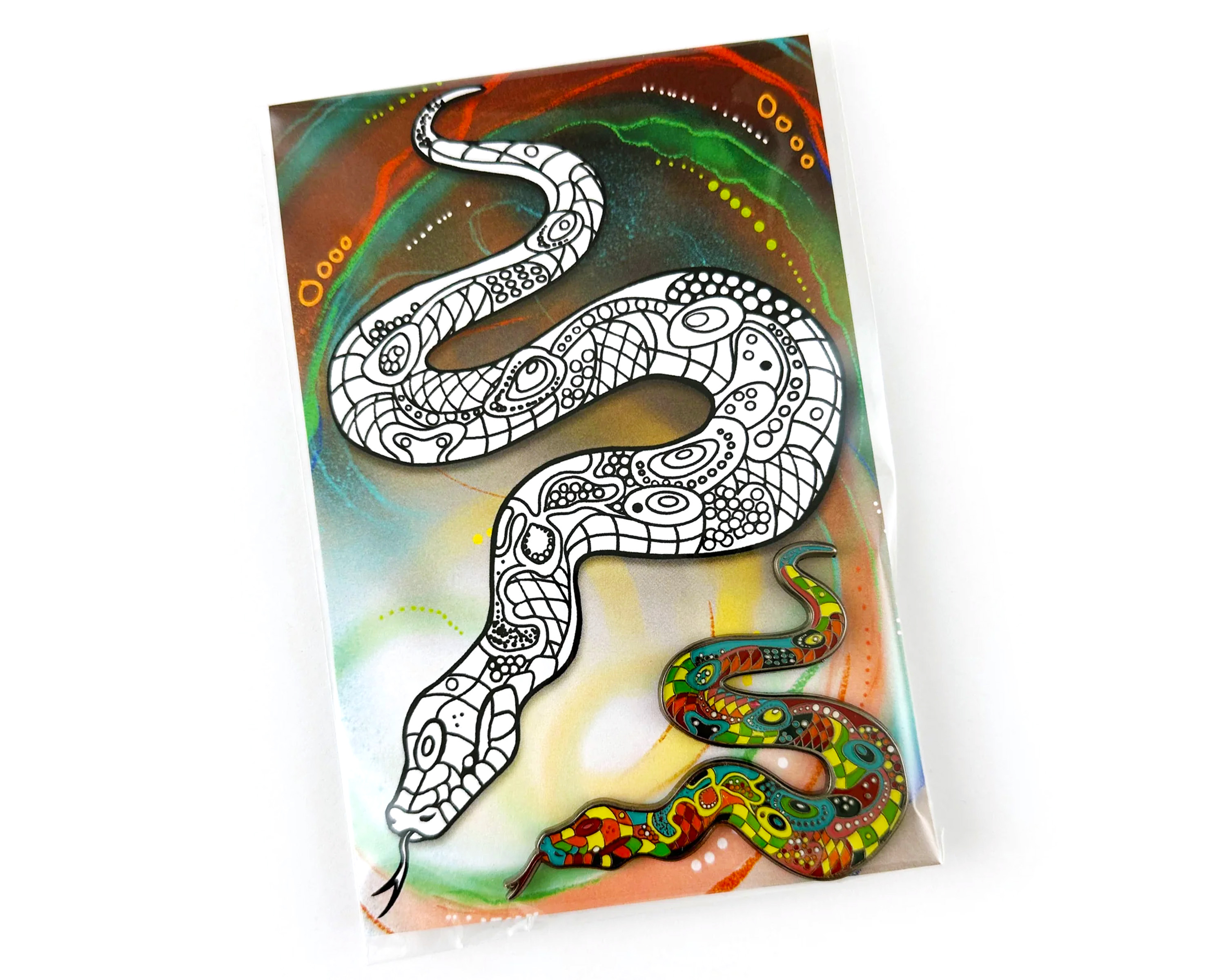 * Each pin is sold on a custom 4x6" backing card, adorned with complementary artwork that showcases the Rainbow Serpent in its full glory.