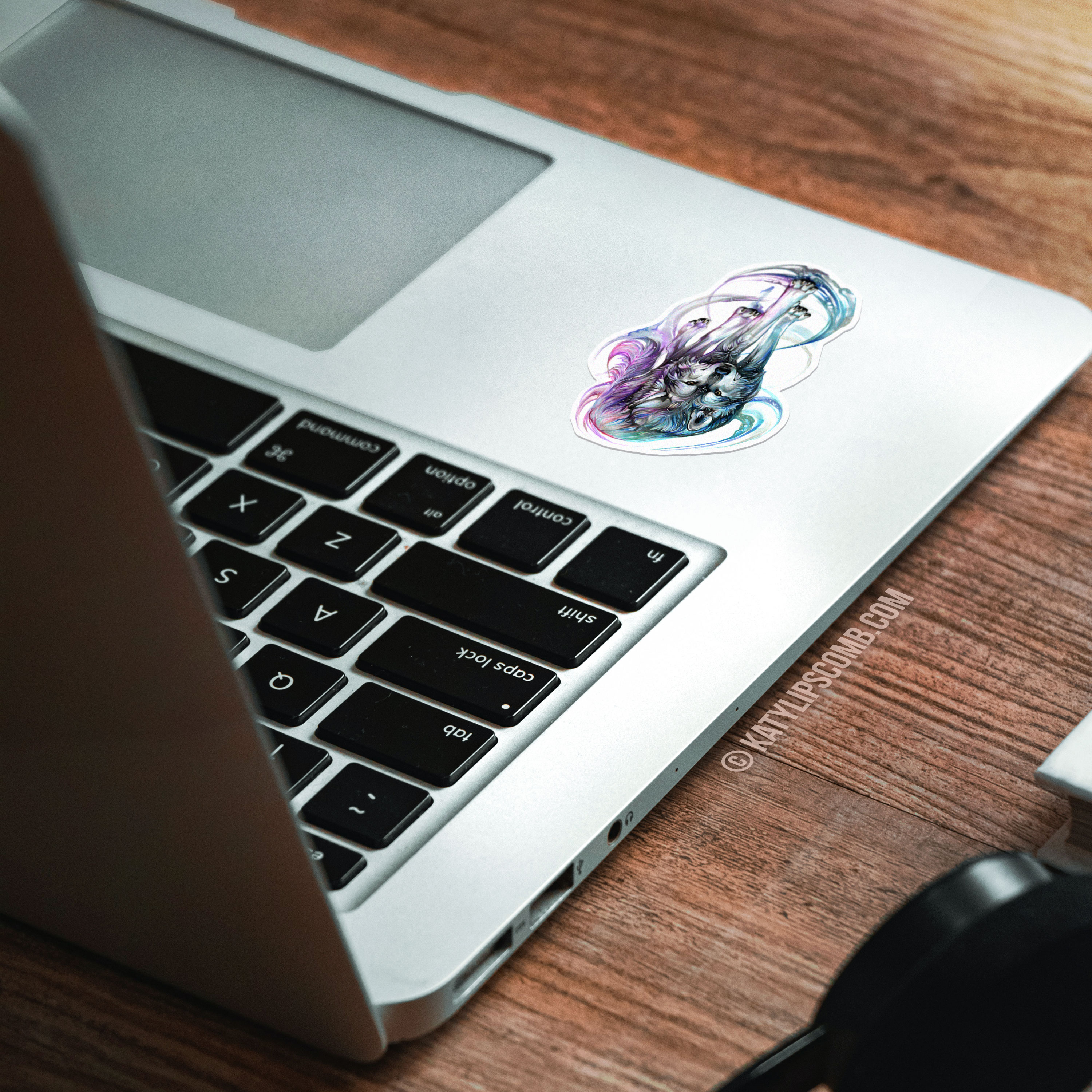 Add a pop of graphic flair to your laptop, phone, bumper, or water bottle with our custom vinyl stickers! Available in a huge array of designs, sizes, and finishes, each sticker has carefully crafted for years of enjoyment! This design, the small size of our Aurora Wolf, measures approximately 2 inches by 3 inches.