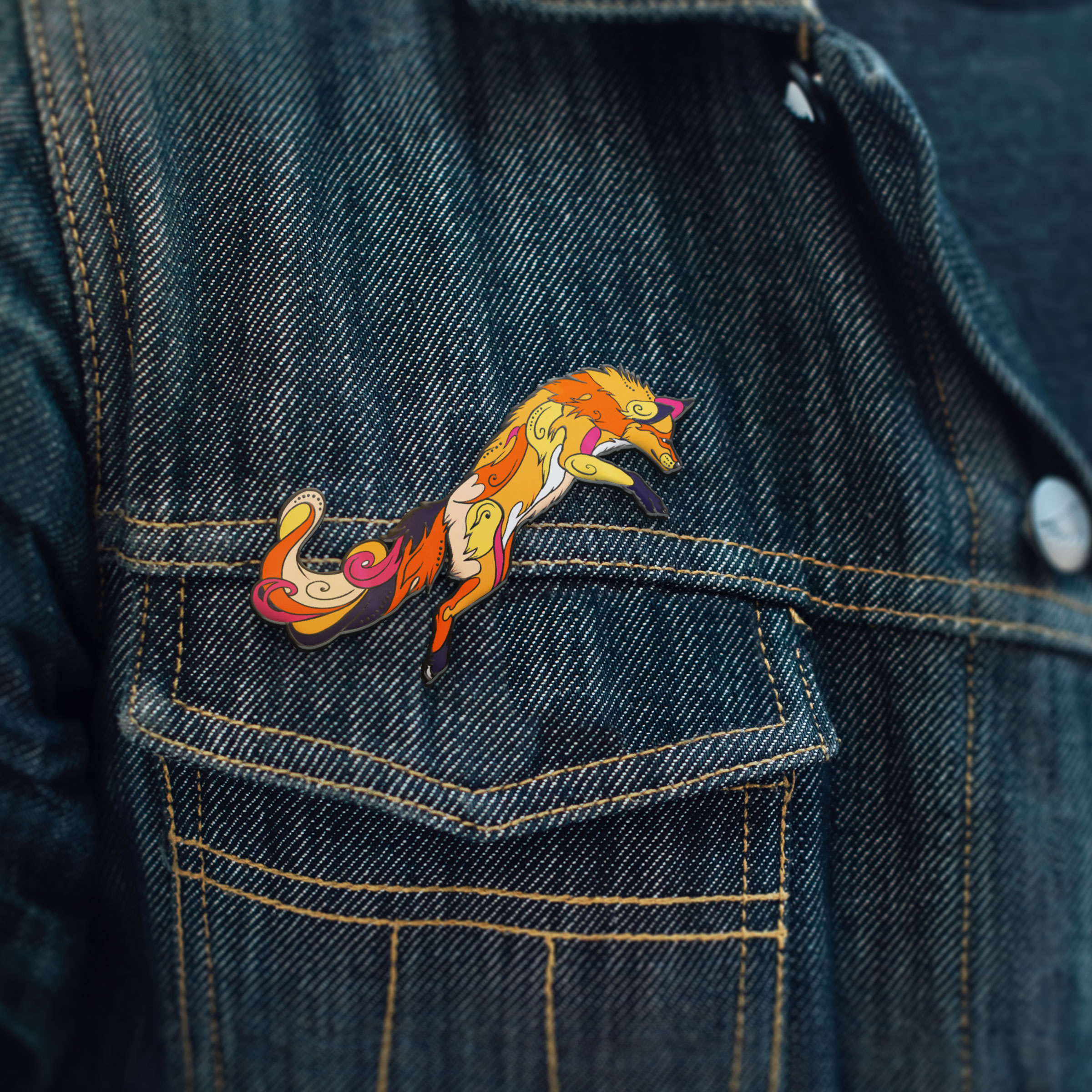 Made for our Patreon Pin-of-the-Month Club, this adorable enamel pin from September 2020 is based on our original illustration depicting a Red Fox leaping high into a snowy background! With seven stunning enamel colors and black nickel plating, this pin is a true showstopper!