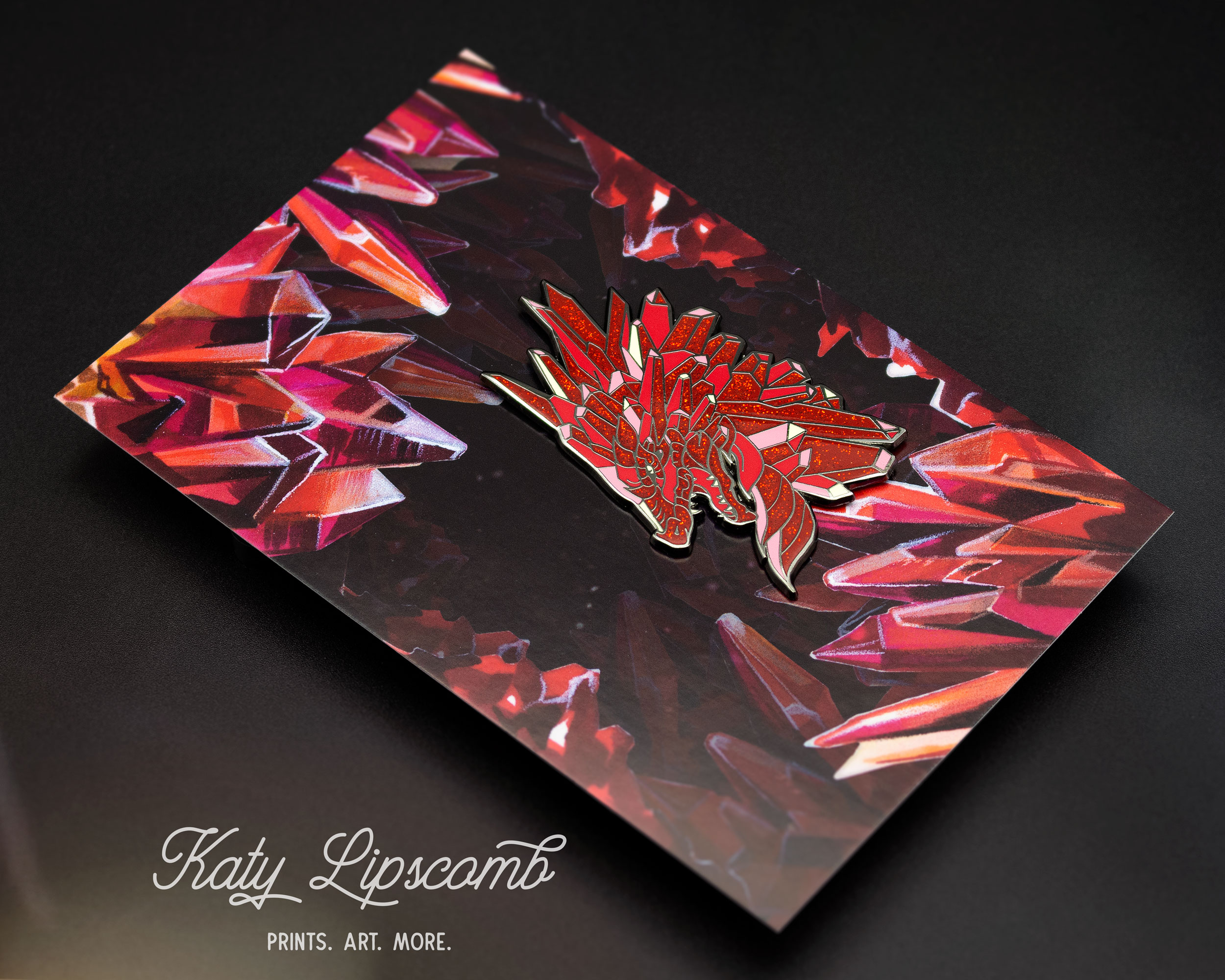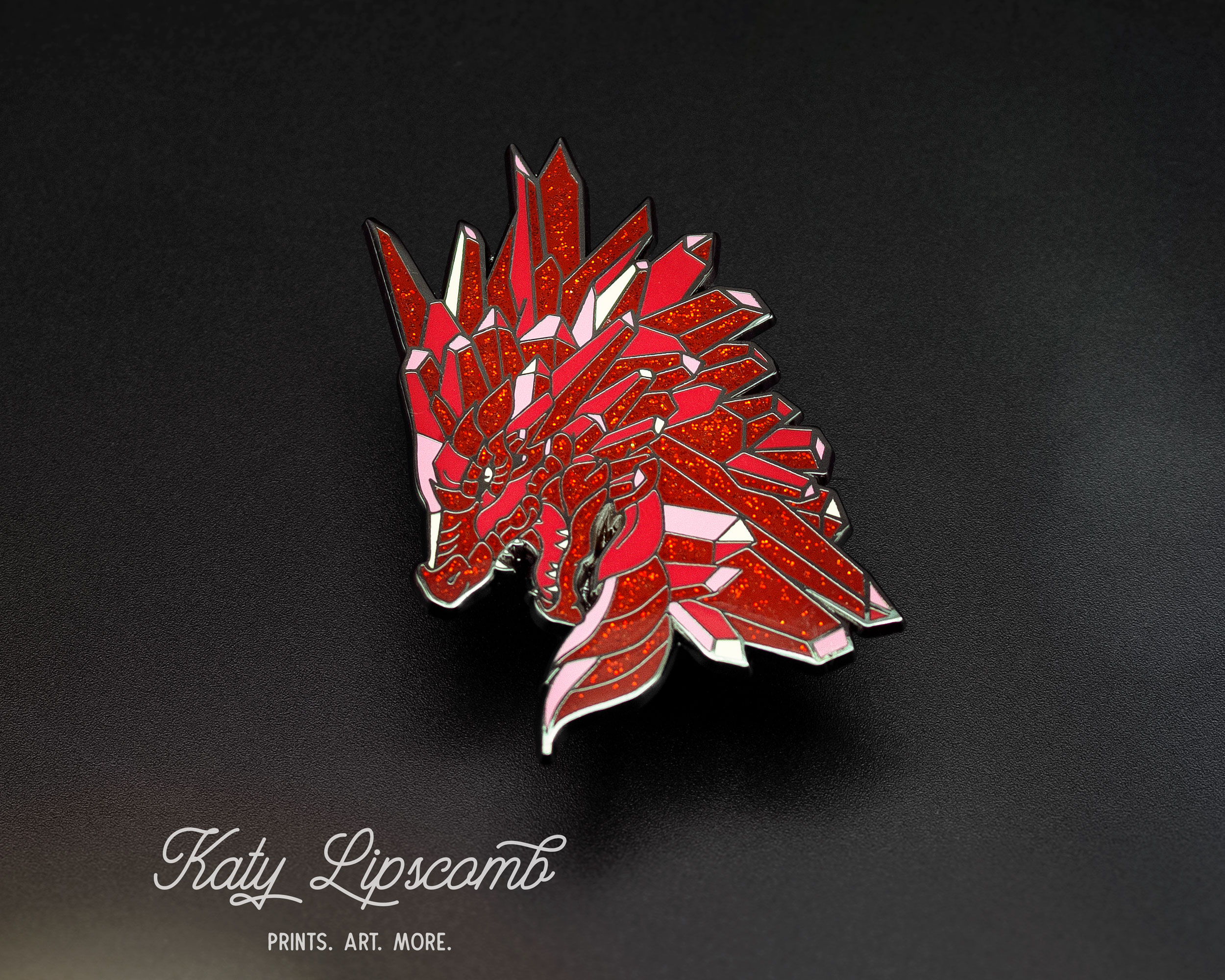 Made for our Patreon Pin-of-the-Month Club, this Ruby Dragon enamel pin from December of 2021 is truly a one-of-a-kind work of wearable art! With four colors of hard enamel and black nickel plating, this pin has stunningly vibrant colors accented with shimmering glitter details. As if this wasn't good enough, we've added an exclusive Holographic Sticker included for free with each pin! Only 150 of these limited-edition pins have been produced and will never be recreated in the same colors - once it's gone, it's gone!