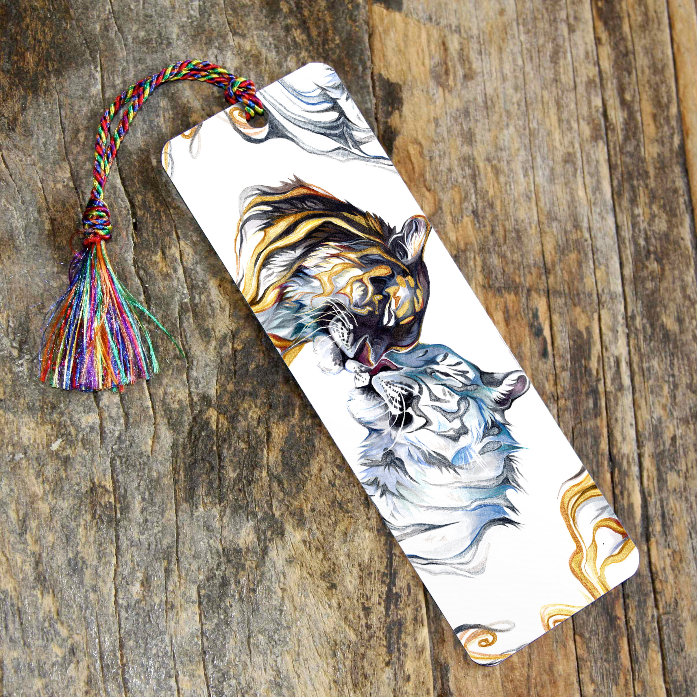 Each bookmark features a durable, high-resolution lamination print with quarter-rounded edges. A unique rainbow tassel finishes off the striking single-sided image, making it the perfect way to keep your place in your favorite book. Each bookmark measures roughly 2.25x6.25" and has a full-color print on one side.