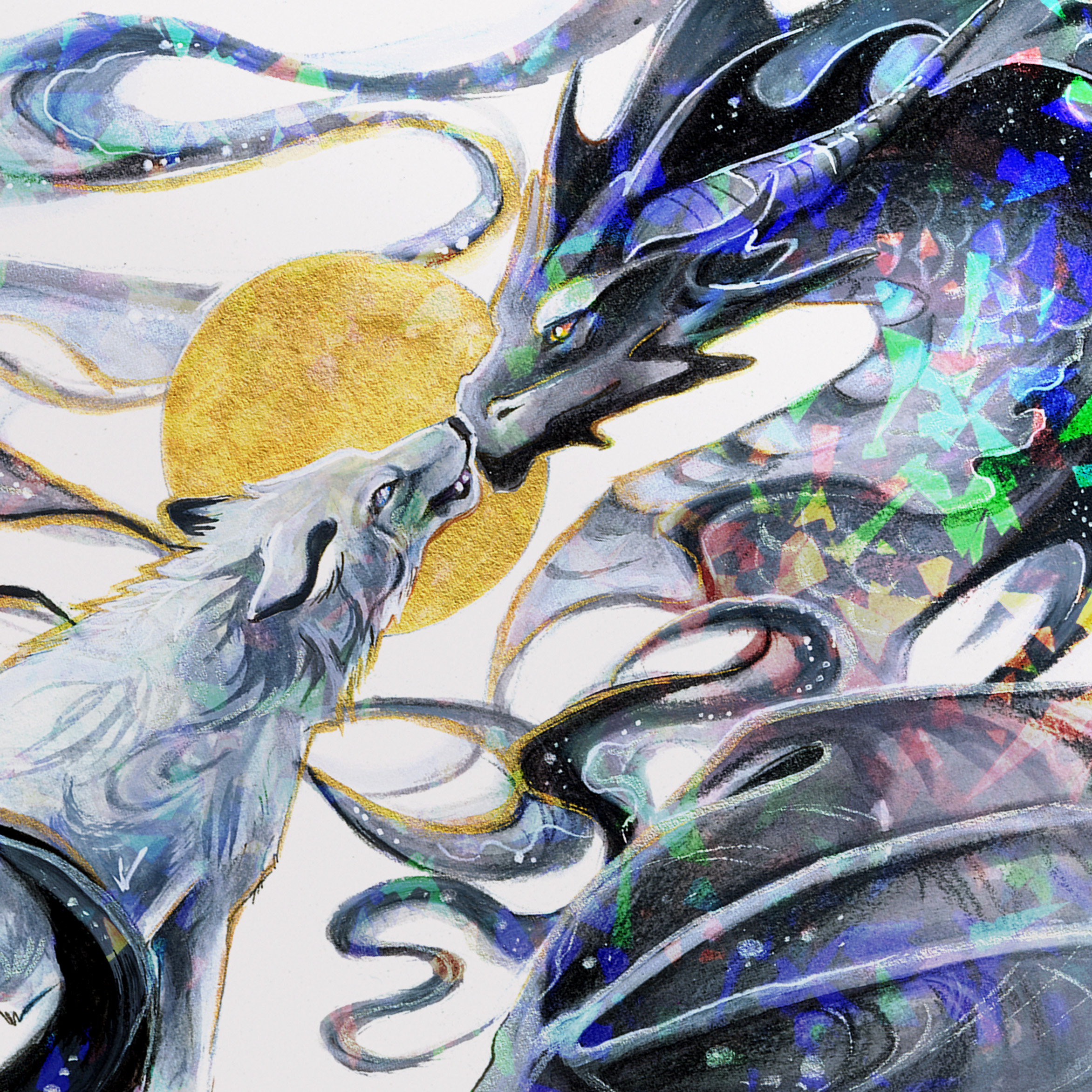Each poster is printed on extra heavy-duty acid-free cardstock, coated with a holographic layer that selectively enhances darker areas of the artwork while leaving lighter portions untouched. This design amplifies contrast and ensures the artwork truly pops.