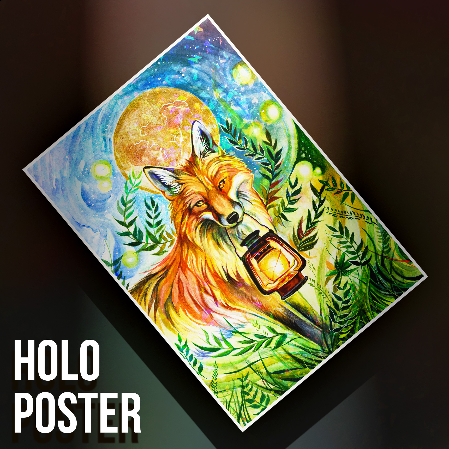 Each poster is printed on extra heavy-duty acid-free cardstock, coated with a holographic layer that selectively enhances darker areas of the artwork while leaving lighter portions untouched. This design amplifies contrast and ensures the artwork truly pops.