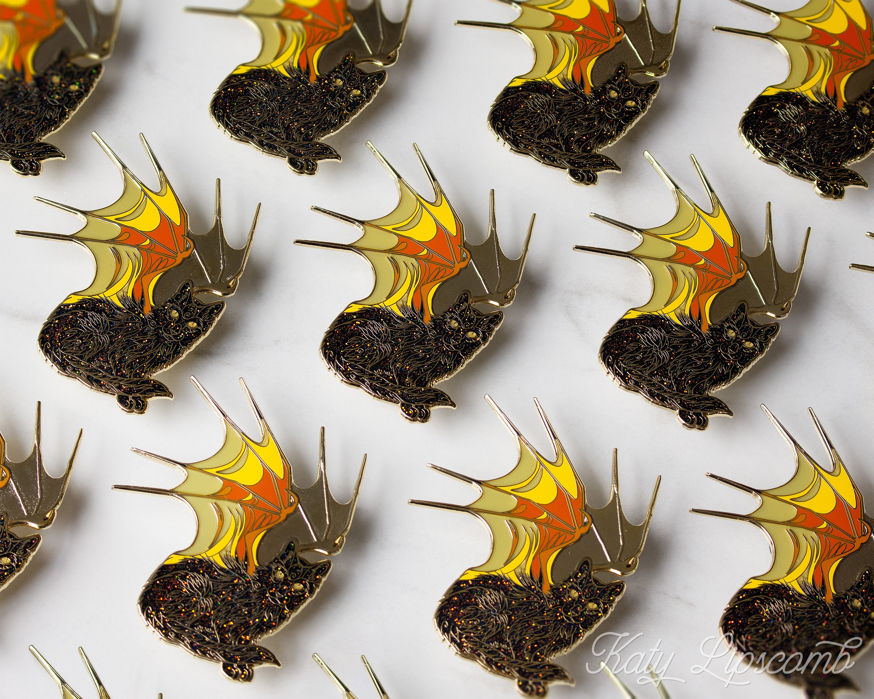 Each month, we strive to create a new enamel pin that captures the essence of an original illustration. For October 2023, we have translated our Winged Cat illustration into our newest enamel pin! As voted on by our Patreon members, this design features a limited color palette with tons of shimmering glitter details! Translucent enamel and recessed metal details add elegant effects to this stunning feline. Our Black Cat enamel pin is limited-edition and never to be replicated in exactly the same way, so reserve yours while you can!
