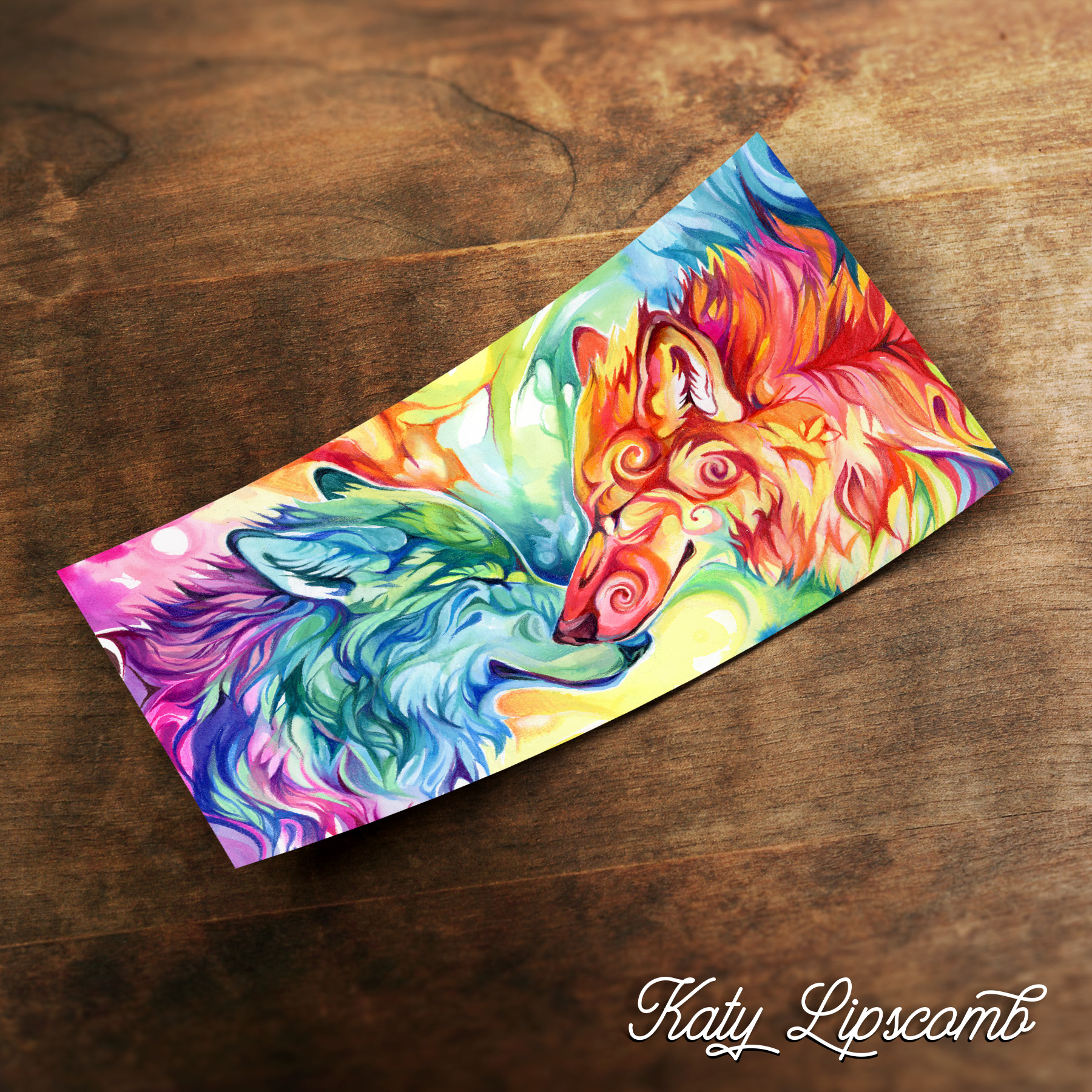 Our best-selling Nuzzling Wolves design is now available as a jumbo vinyl sticker! Featuring two wolves with gorgeous rainbow hues, this is an incredible way to add a pop of color to just about anywhere.
