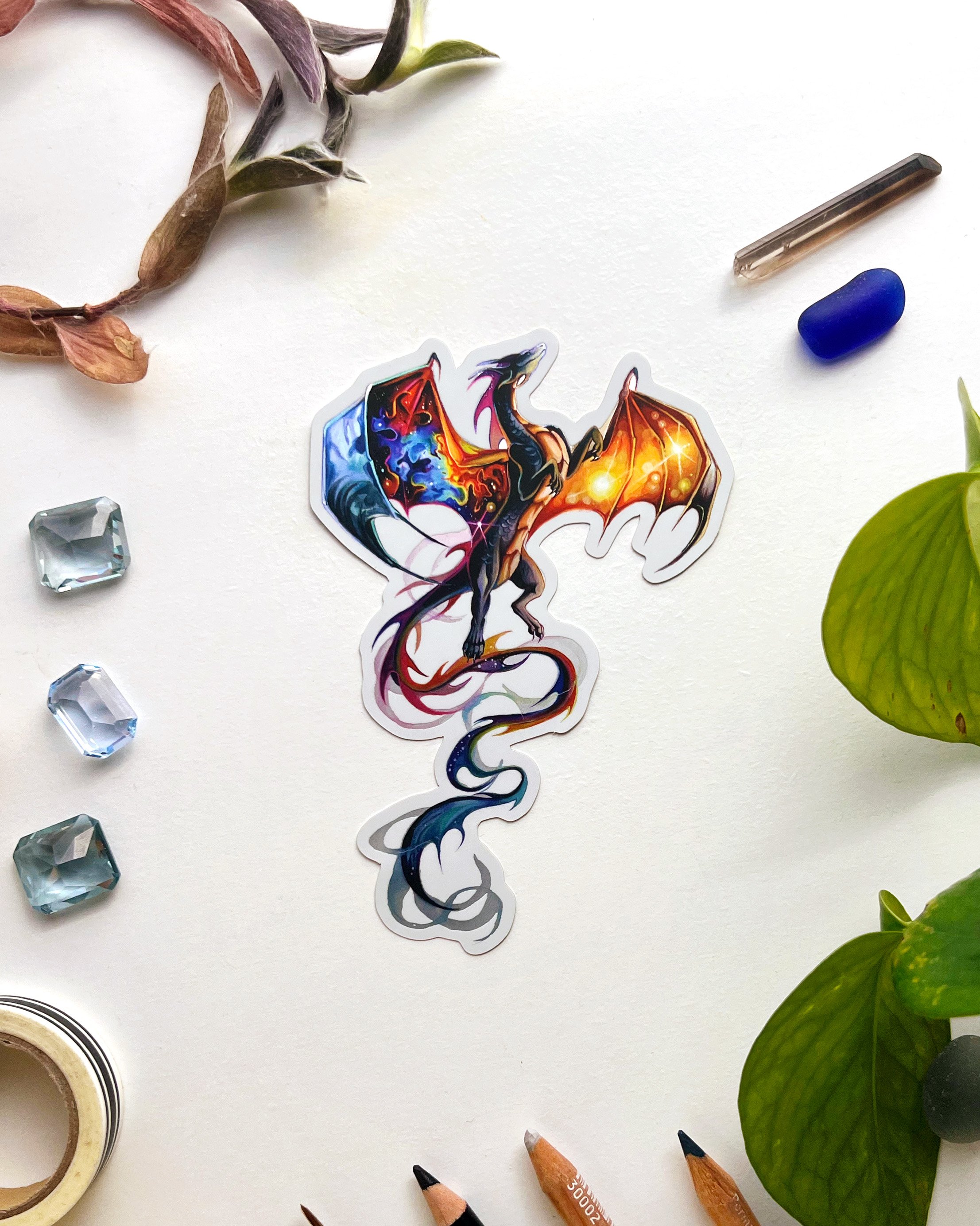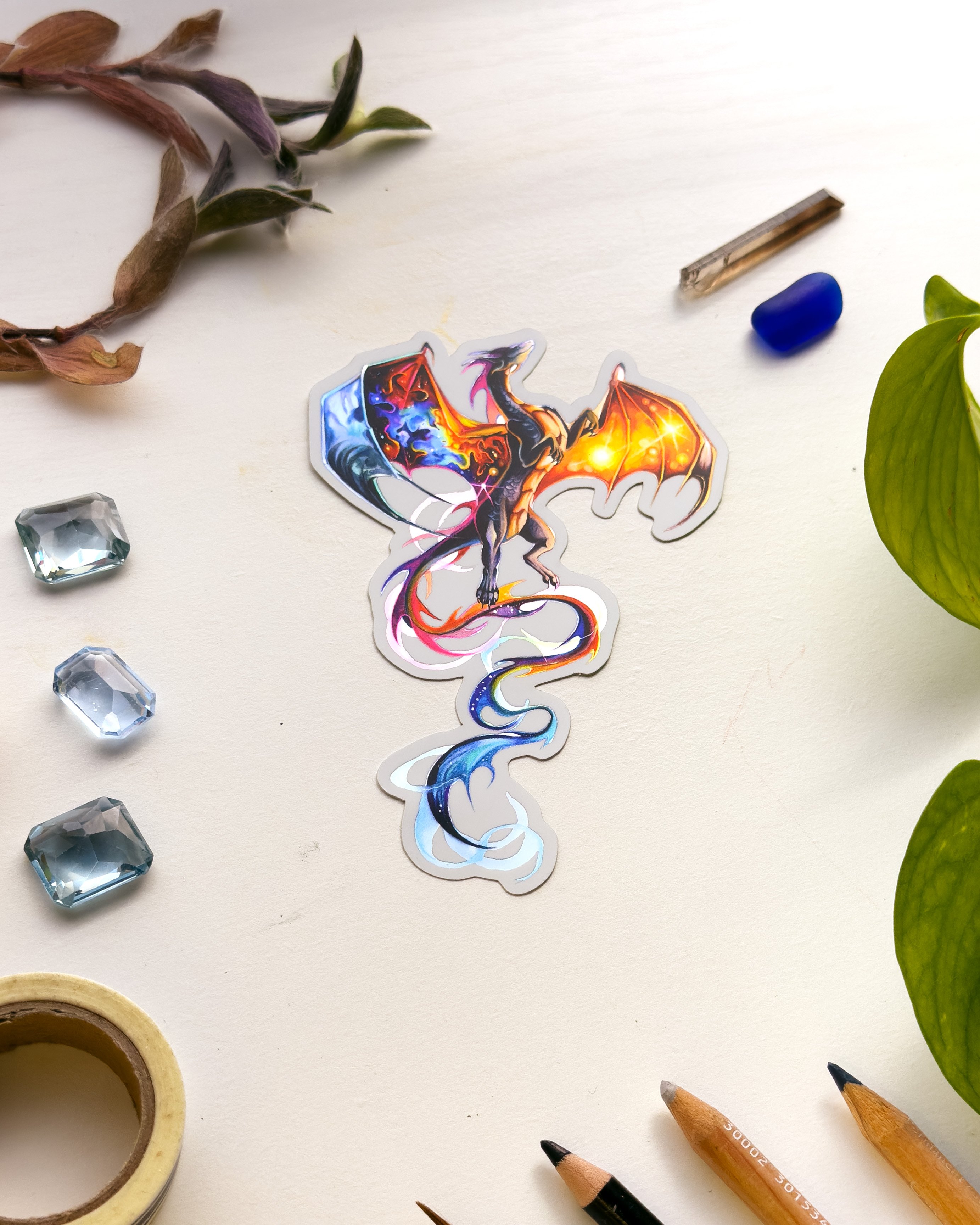 Turn heads and spark your imagination with our holographic vinyl stickers featuring animals and fantastical creatures brought to life in our signature watercolor and colored pencil style. These eye-catching designs are elevated with a stunning “oil slick” holographic effect, creating a rainbow shine that shifts and sparkles as it catches the light. The holographic accents are thoughtfully applied to specific elements of each design, enhancing the subject’s details while leaving the border and background crisp and clear.