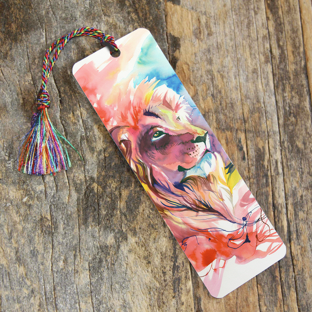 Each bookmark features a durable, high-resolution lamination print with quarter-rounded edges. A unique rainbow tassel finishes off the striking single-sided image, making it the perfect way to keep your place in your favorite book. Each bookmark measures roughly 2.25x6.25" and has a full-color print on one side.
