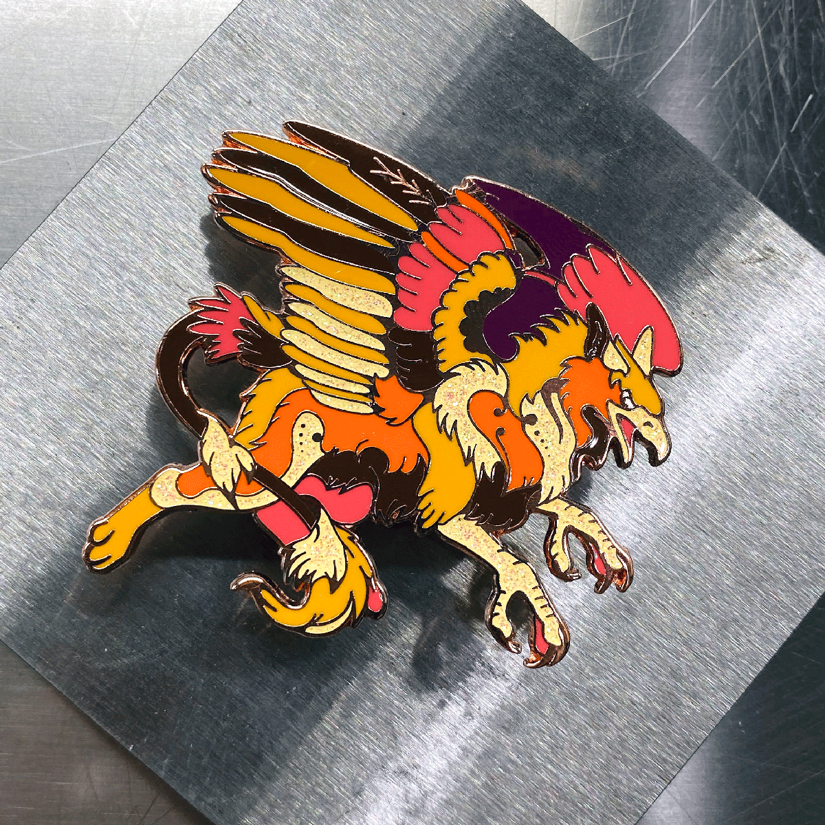 Continuing with 2019's fantastical creatures theme, this Enamel Pin from our Patreon Pin-of-the-Month club features a regal Griffon in flight.