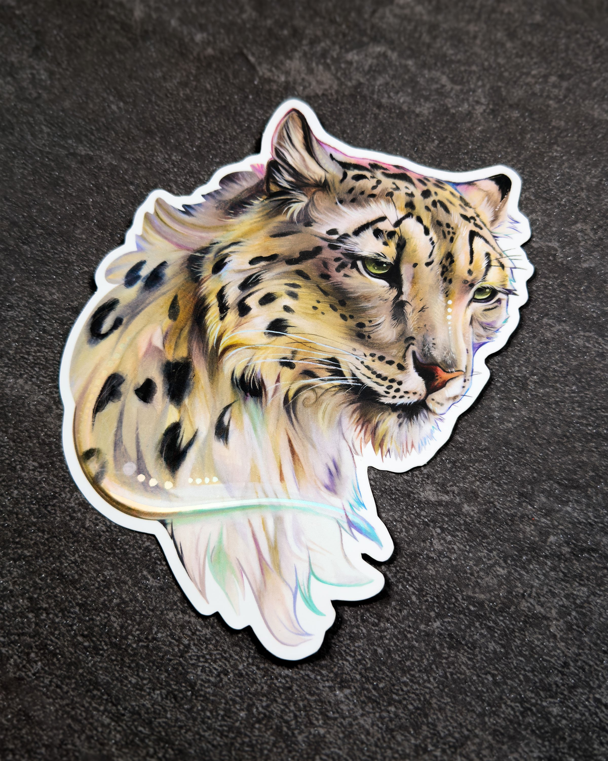 Turn heads and spark your imagination with our holographic vinyl stickers featuring animals and fantastical creatures brought to life in our signature watercolor and colored pencil style. These eye-catching designs are elevated with a stunning “oil slick” holographic effect, creating a rainbow shine that shifts and sparkles as it catches the light. The holographic accents are thoughtfully applied to specific elements of each design, enhancing the subject’s details while leaving the border and background crisp and clear.